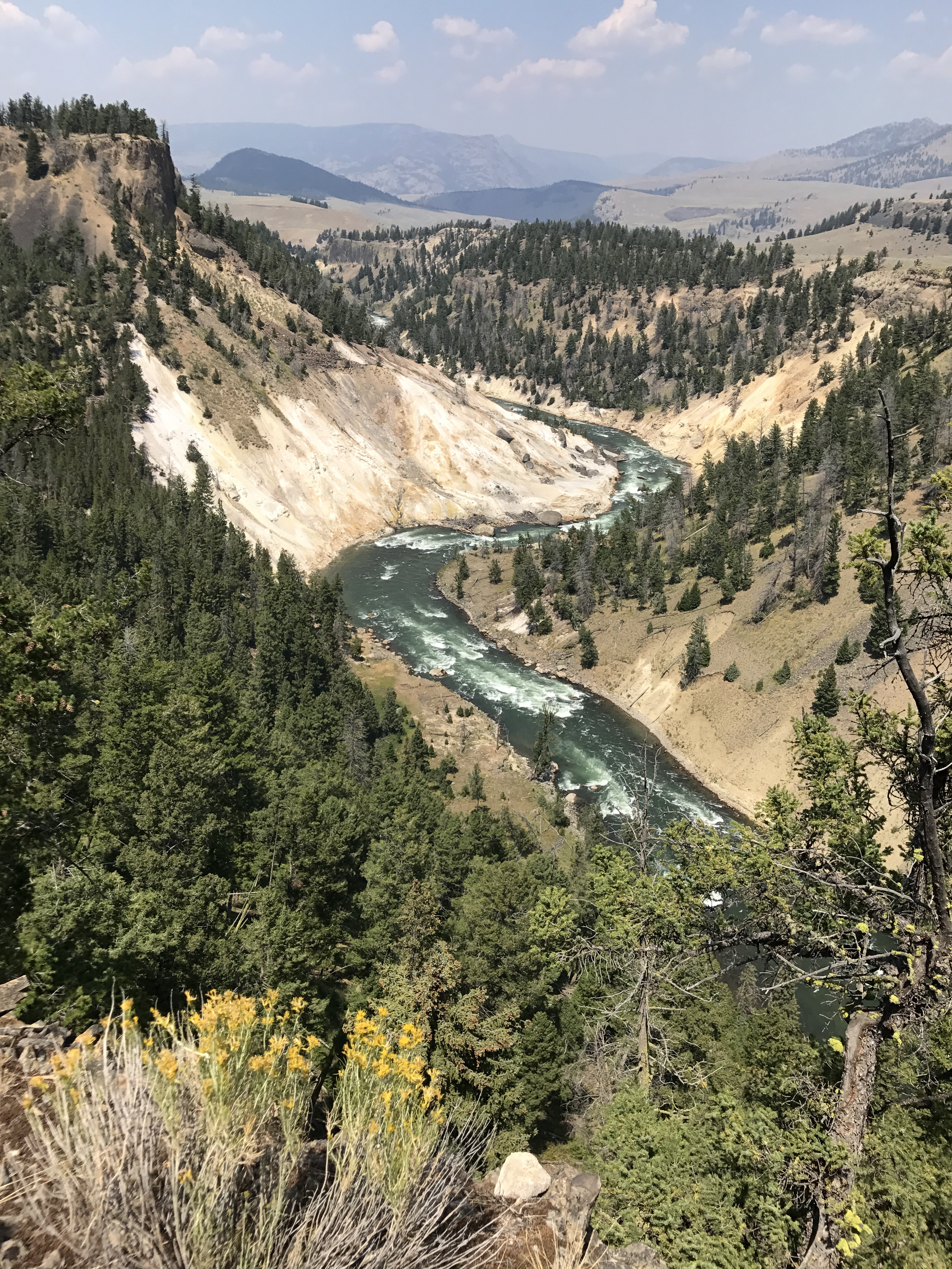 Yellowstone National Park is popular and there are tons of cars and people. I still enjoyed the views and the opportunity to eat a sandwich on a big stone overlooking a beautiful river. The stones are actually yellow!!
